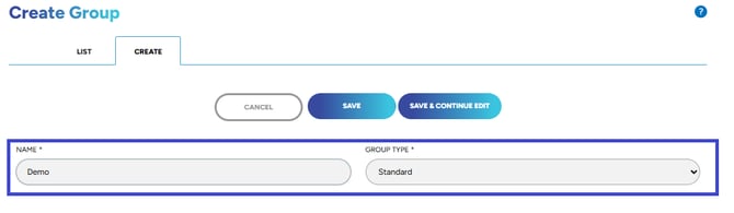 3. You can now assign a name to your new Group and choose its Group Type: