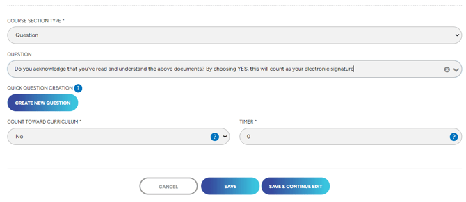 6. Now that we are back at the "Sections" tab we will need to create one more "Course Section". this will be our "E-Signature" section.