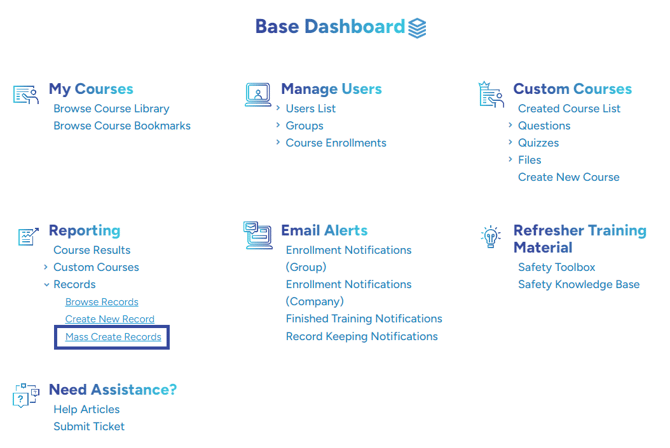 1. Log into your WAVE account and click the "Records" drop-down, then click "Mass Create Records" underneath Reporting.