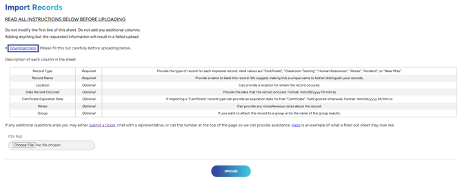 3. Once populated correctly, click 'choose file', select the .csv sheet that you've saved then click 'upload'.
