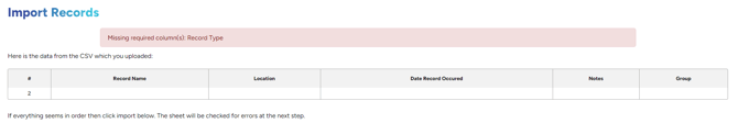 If errors were found, you'll receive the following type of message. Correct any errors and re-upload your .csv file.